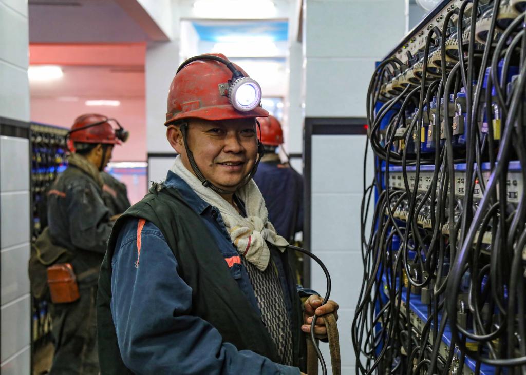 坐标:副井口灯房,农历年三十早上5点42分, 一群换上工装、准备入井的职工师傅们,在取灯时不忘互相给工友送上新春的祝福。
