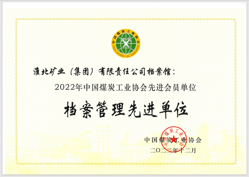 近日,中国煤炭工业协会公布“2022年度煤炭行业档案工作先进单位和个人名单”,淮北矿业集团荣获“2022年度煤炭行业档案管理先进单位”称号,据悉这已是集团连续3次荣获该荣誉称号。