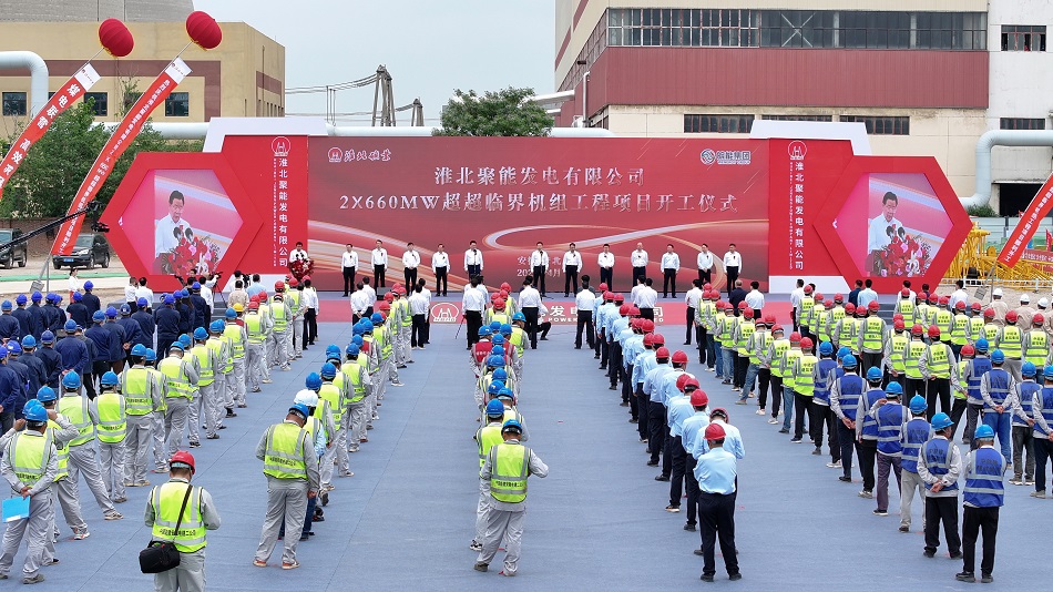 4月28日,淮北聚能发电有限公司2×660MW超超临界机组工程项目举行开工仪式。安徽省国资委党委委员、副主任李向阳,淮北市委常委、市政府常务副市长汪继宏,淮北矿业集团党委副书记、总经理孙方出席仪式并分别致辞。淮北矿业集团党委常委、总会计师周四新主持仪式。
